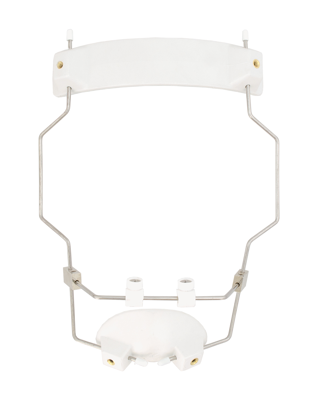 Vollständig einstellbare kieferorthopädische Gesichtsmaske mit mitgeliefertem Sechskantschlüssel. Wird als Ausstattungsoption für Klasse-III-Fehlstellungen verwendet. Die elastische Ausdauer wird durch eine spezielle Vorrichtung reguliert, die die beste Verankerung gewährleistet.